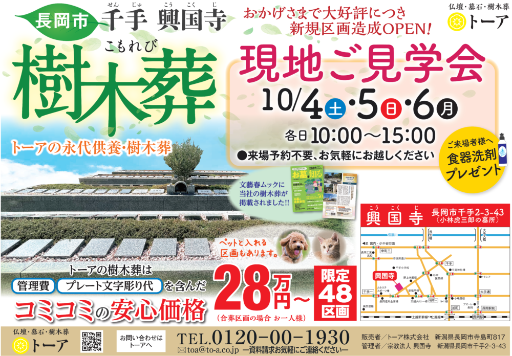 おかげさまで大変ご好評いただいております 樹木葬こもれび 長岡千手 興国寺。