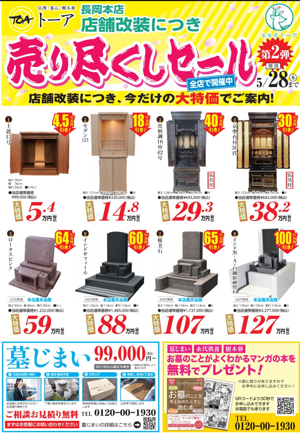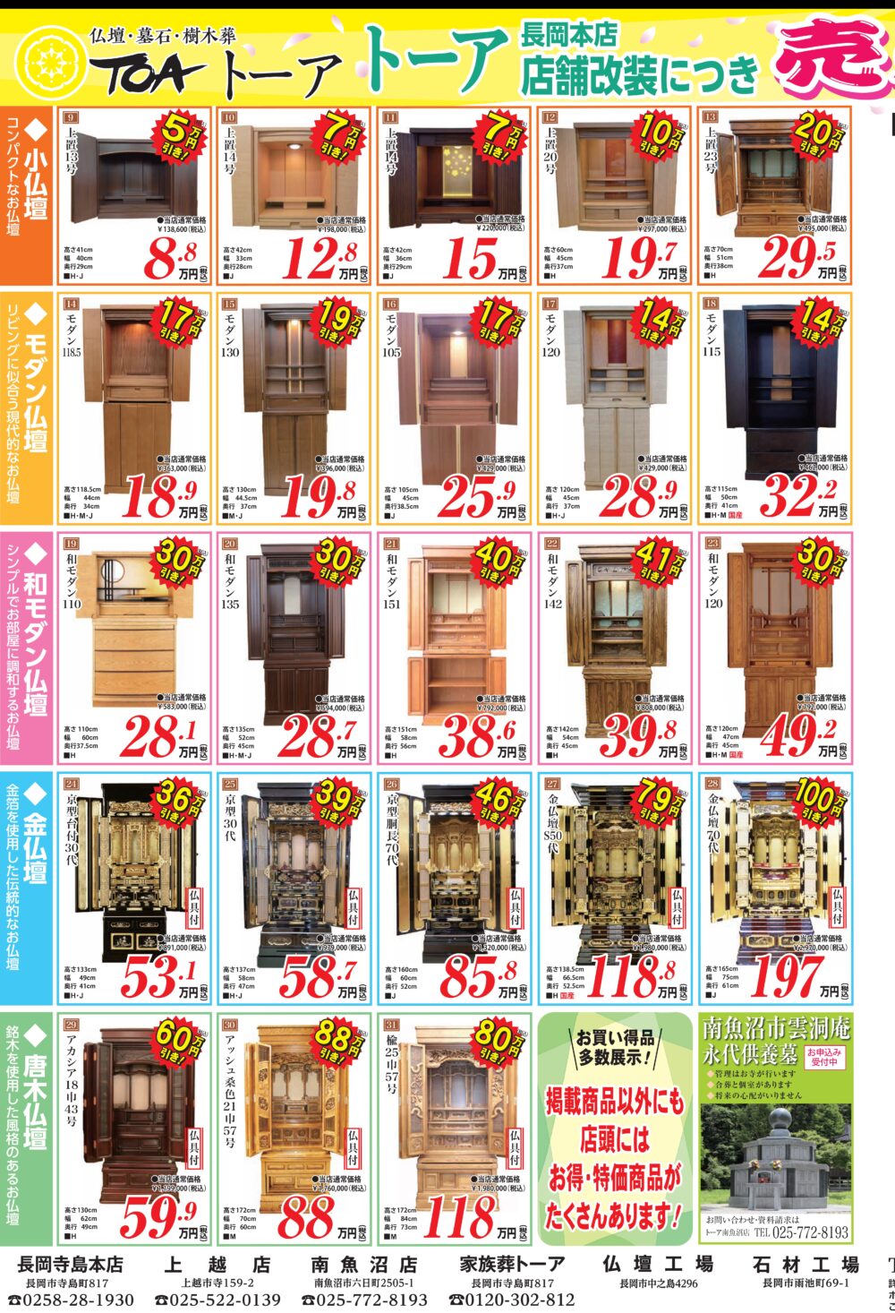 長岡本店 店舗改装につき、仏壇・墓石の売り尽くしセール開催
