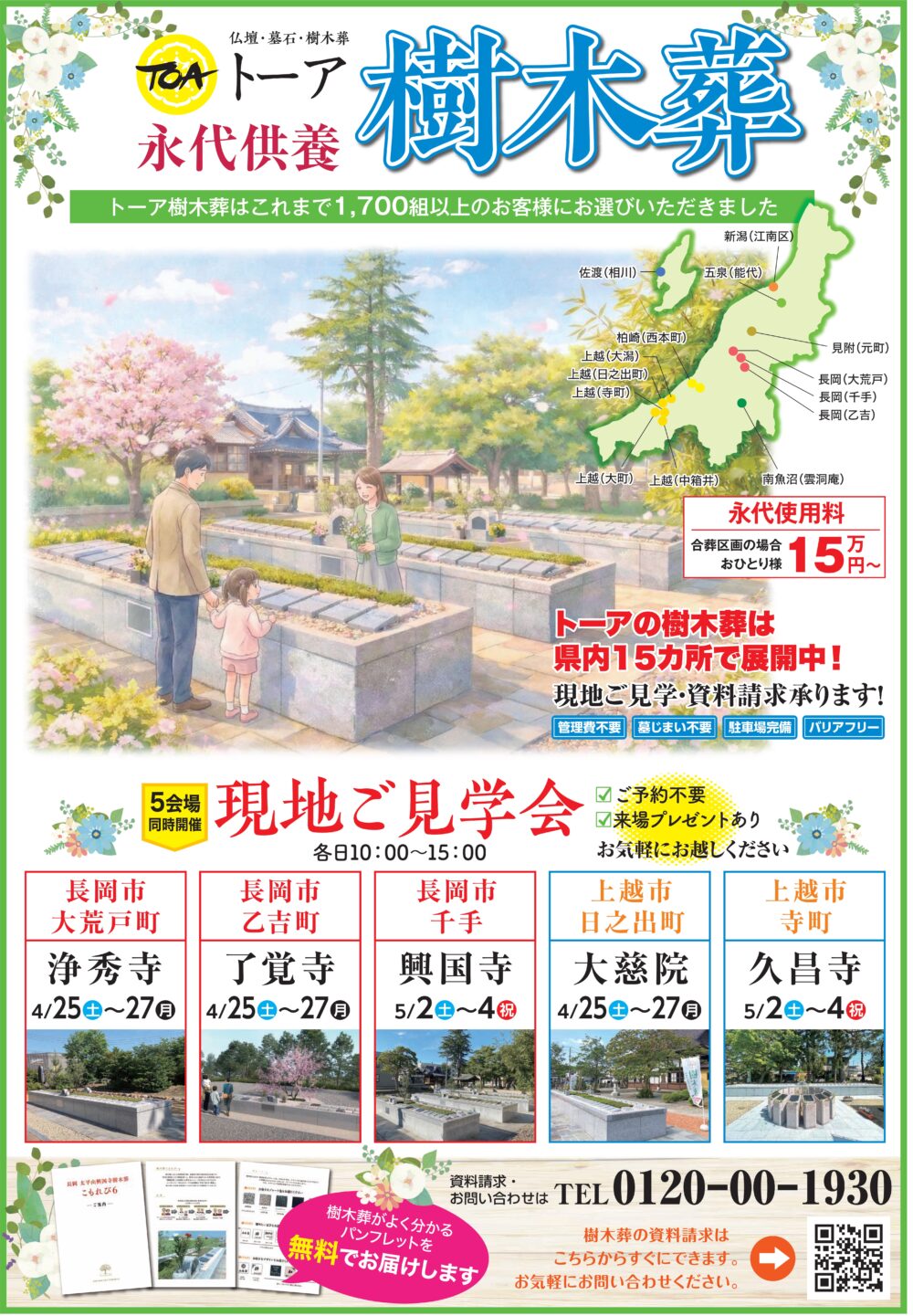 トーアの樹木葬は、新潟県内15カ所で展開しており、これまで1,700組以上のお客様にお選びいただいております。